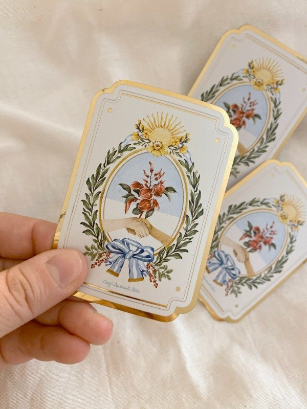 Stickers impresos con tecnología Uv sobre vinilo gold. Troqueladas con corte completo. Resistentes al agua