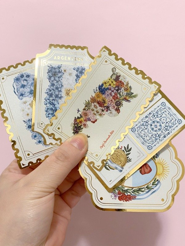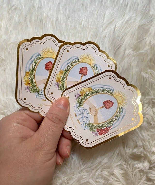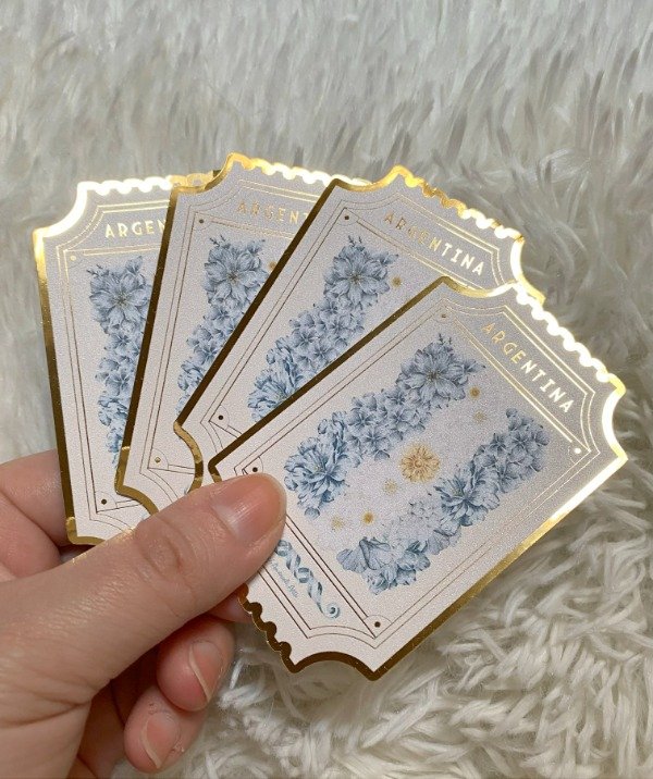 Stickers impresos con tecnología Uv sobre vinilo gold. Troqueladas con corte completo. Resistentes al agua